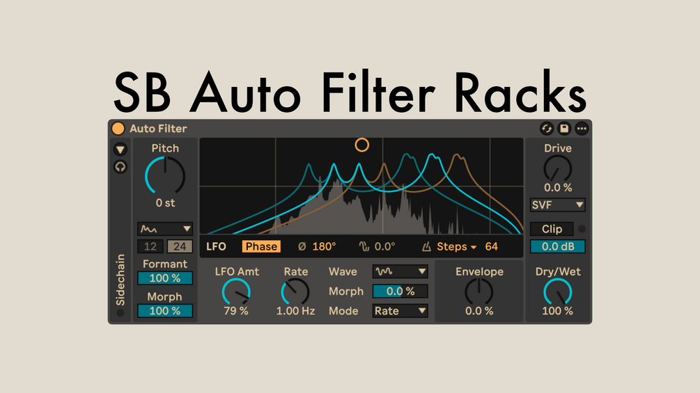 The zip file 5 fully macro mapped Auto Filter audio effect racks with 10 variations each, equalling 50 free presets. They all showcase the new filter types as well as other new features in the overhauled Auto Filter in Ableton Live 12.2.