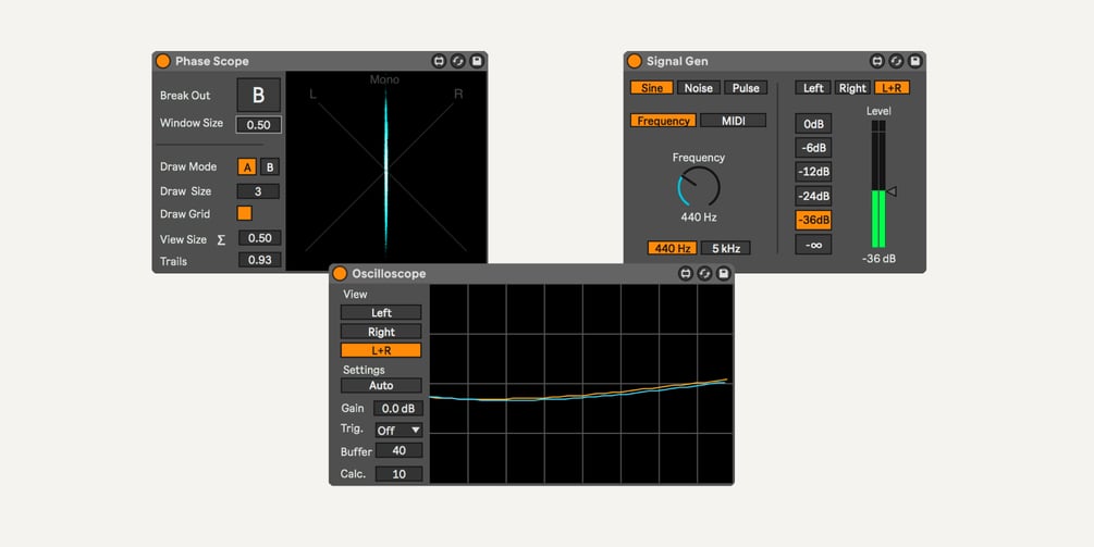 This free Max for Live Pack by Max for Cats contains three devices. A phase scope, an oscilloscope and a signal generator. All helpful tools for mixing in Ableton Live. More information.
